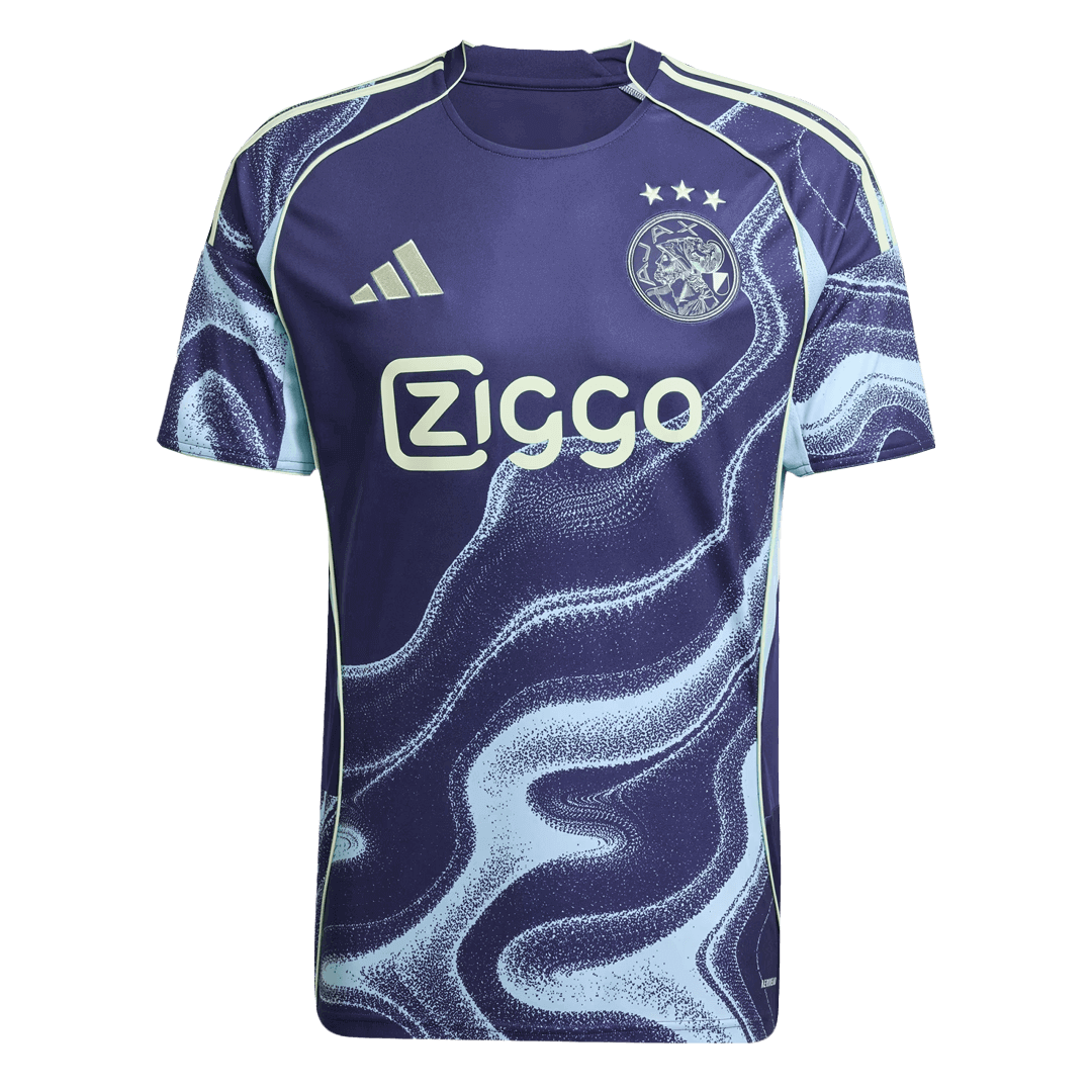At Gogoalshop, this Ajax jersey comes with full customization options, including 100% official player printing and numbers. Whether you support Steven Bergwijn, Brian Brobbey, or rising talents from the Ajax academy, this Ajax authentic jersey allows you to wear your passion with pride. Available in men’s, women’s, and fan jersey versions, it’s perfect for matchday or casual streetwear.Why choose this Ajax Soccer Jersey?The iconic”Night Sky” design with its wavy blue pattern is paired with fluo green and sky-blue details for a fresh, modern look. Featuring the first-ever monochrome Ajax crest, this lightweight and breathable kit is built for performance. Available as both a replica jersey and an authentic jersey, it’s the perfect choice for fans seeking acheap football jerseywithout compromising on quality.